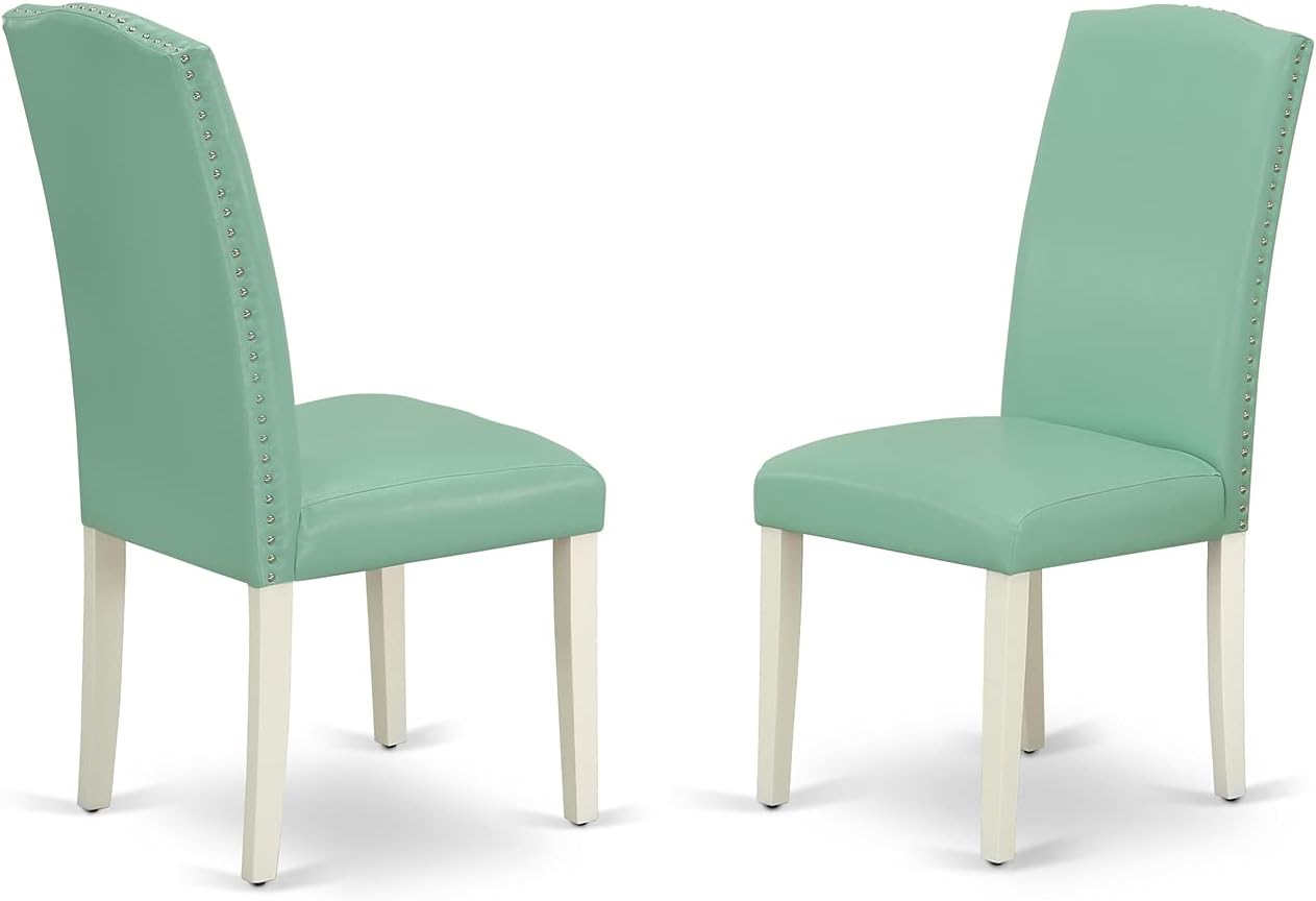 Artisanal Abode 9 Pc Kitchen Set for 8 Dining Table with Leaf and Eight Parson Chair with Linen White Leg and Pu Leather Color Pond