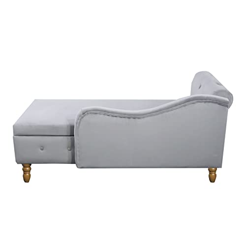 58" Modern Velvet Chaise Lounge Indoor,Upholstered Lounge Chair with Storage & Pillow, Rolled Arm Lounge Sofa for Living Room Bedroom Office (Gray)
