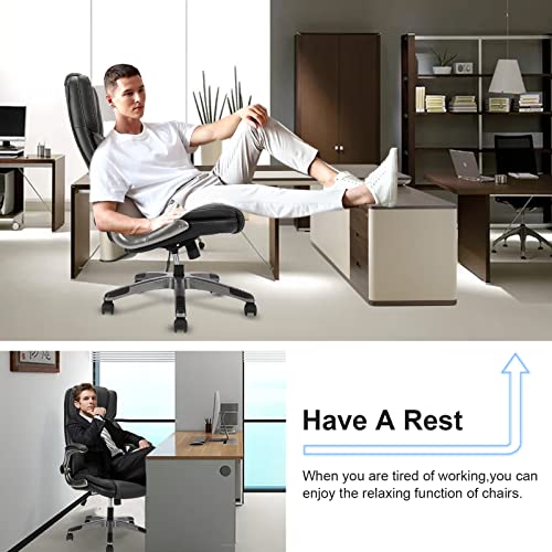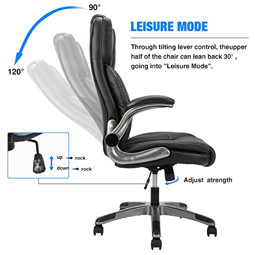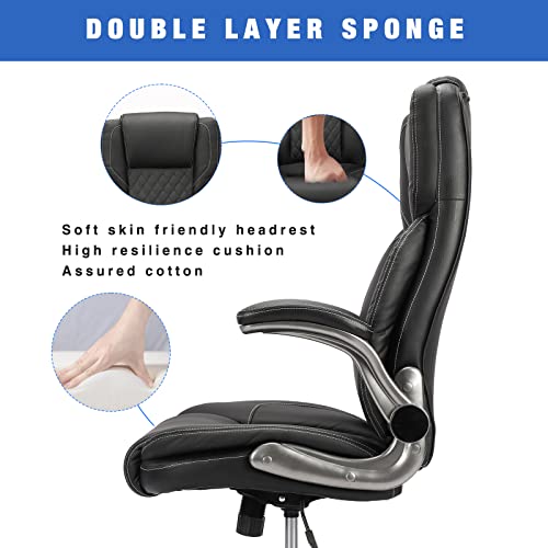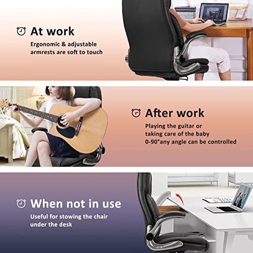 Leather Office Chair with Flip up Arms, Ergonomic Executive Office Chairs with Wheels, 90-120° Rocking High Back Office Desk Chair with Lumbar Support, Swivel Task Chairs(Grey)