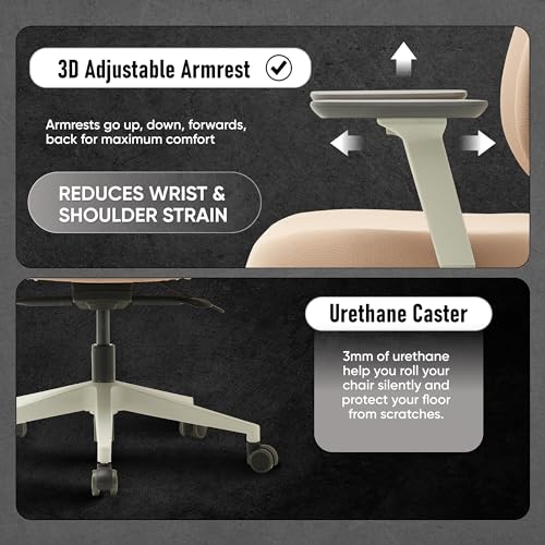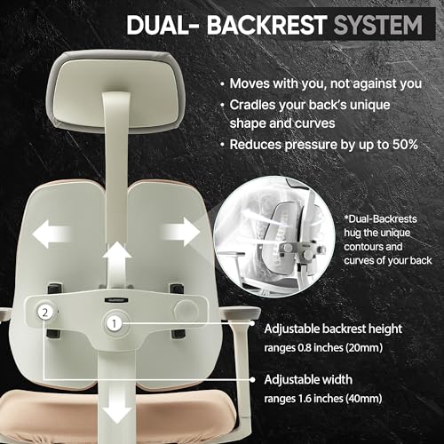 [Dual-Backrests Gold Renewal Ergonomic Office Chair - Best Office Chair for Posture, Office Chair for Bad Back, Back Pain,Lumbar Support l Home Office Desk Chairs (White frame & Beige)