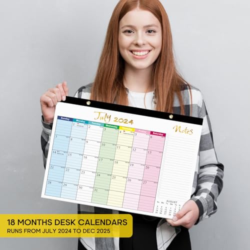 Desk Calendar 2024-2025,18 Months July 2024 to Dec 2025 - Large 17" x 12" Desktop/Wall Monthly Calendar for Home or Office - Rainbow