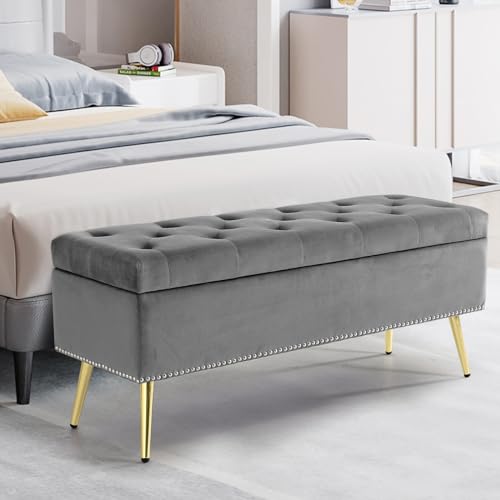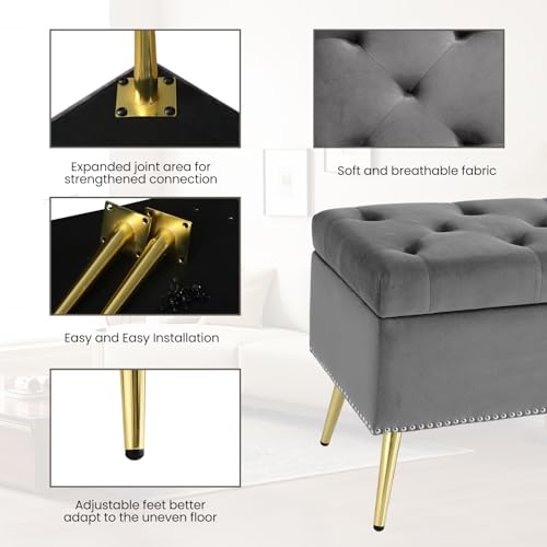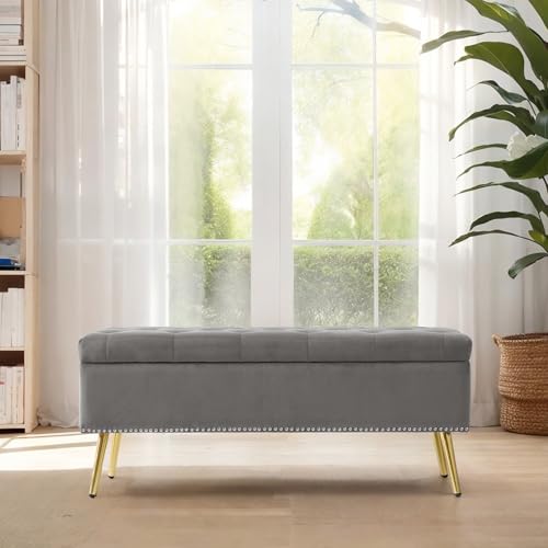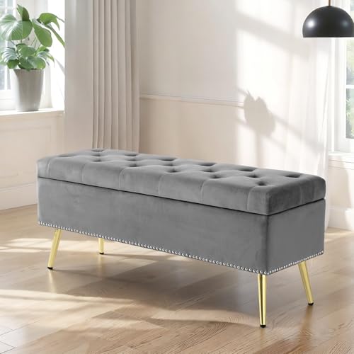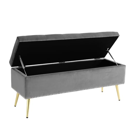 Ottoman with Storage Bench,Padded Seat Storage Chest,Footrest,Coffee Table for Living Room,Bedroom,Entryway,Office,Modern Craft Design with Gilded Leg Easy Assembly,13"D x 47"W x 16"H(White)