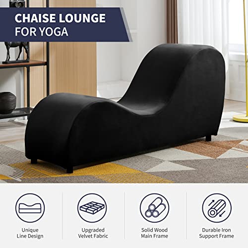 S Curved Yoga Chair for Adults, Velvet Chaise Lounge Indoor for Yoga, Ergonomic Tantric Chair, Modern Yoga Chaise Lounge for Stretching, Relaxation,Exercise, 60D x 18W x 27H Inch-Dark Grey
