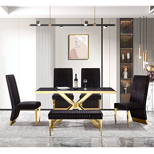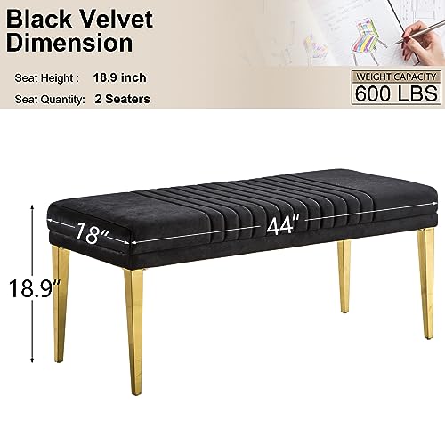 AZhome Modern Luxury Upholstered Bench, White PU Leather Dining Room Channel Ottoman with Gold Stainless Steel Legs