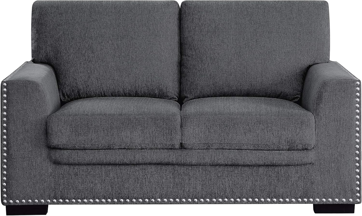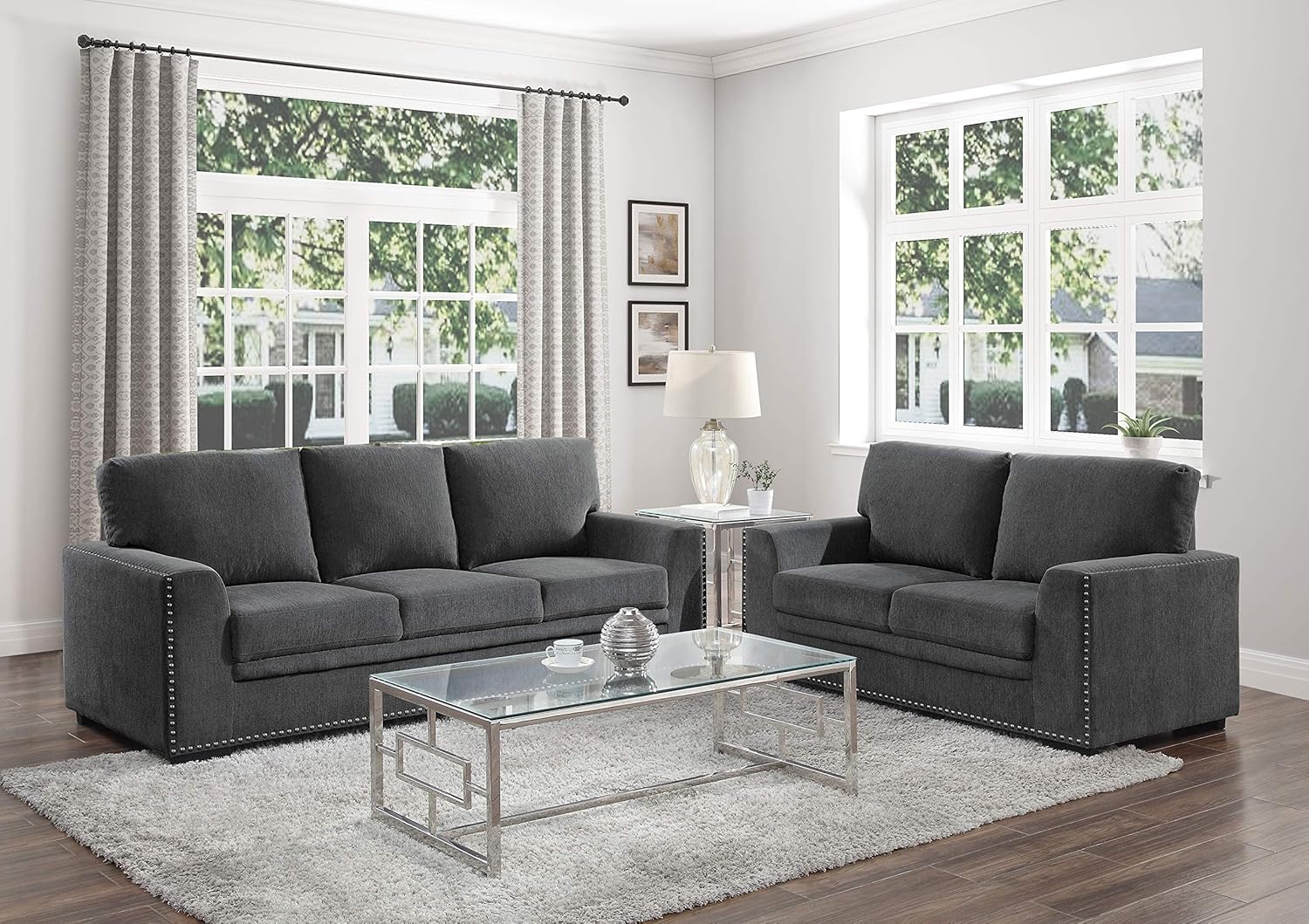 Lexicon Couch for Living Room, Chenille Sofa Couch with Solid Wood Frame and Nailhead Trim, Modern Couch, Upholstered Living Room Furniture, 2 Seater Couch, Charcoal