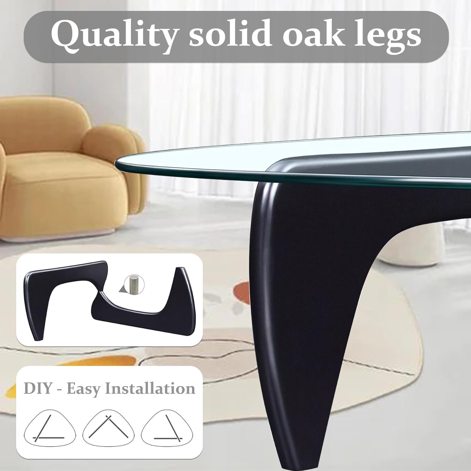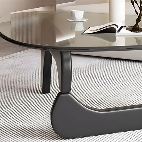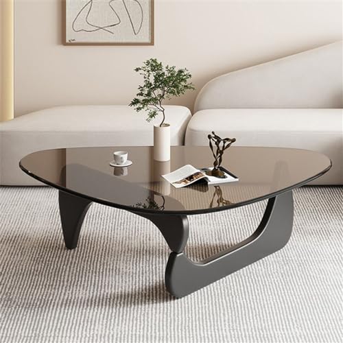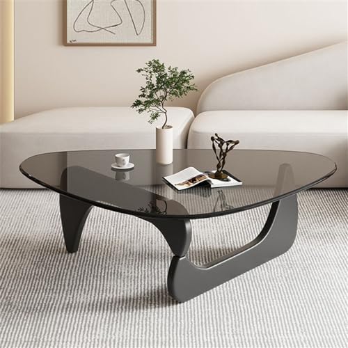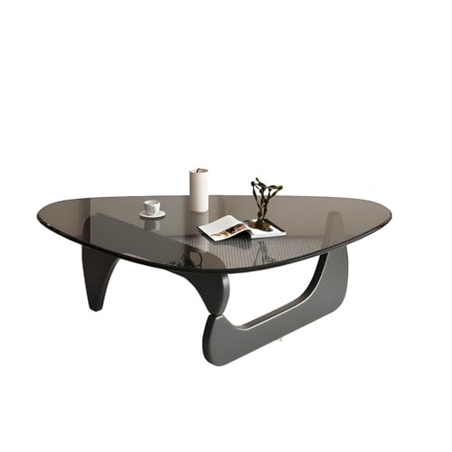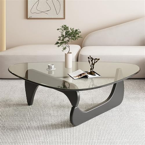 NIUYAO Coffee Table with Triangle Glass Tabletop Vintage Glass End Table Solid Wood Base Modern Table for Living Room Study Leisure -Top:Grey Glass Base:Black Wood 50" L x 36" W x 16" H