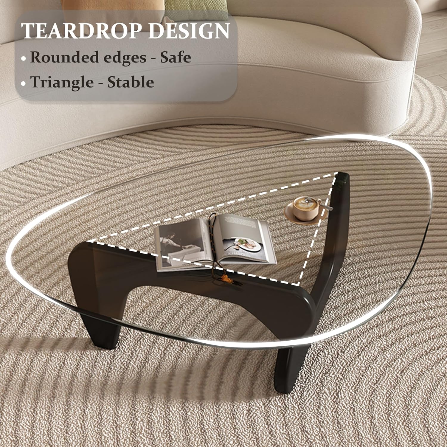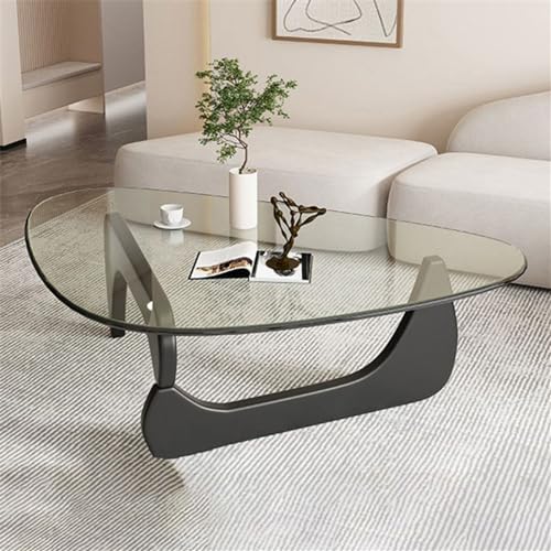 Coffee Table - Triangle Glass Coffee Table with Solid Wood Base Minimalist Modern Design Mid-Century Vintage End Table for Living Room Patio Study (Black/Transparent, Small 32.2 * 22.4 * 16in)