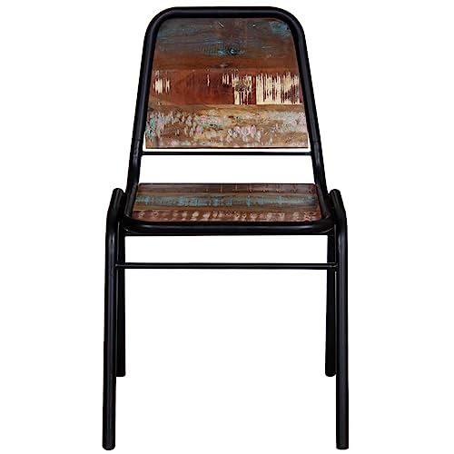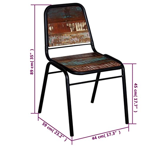vidaXL Dining Chairs 2 Pcs - Solid Reclaimed Wood & Powder-Coated Steel, Antique Furniture for Kitchen/Living Room - 17.3" x 23.2" x 35"
