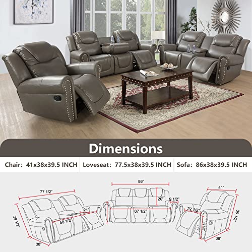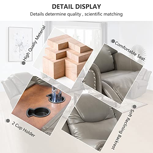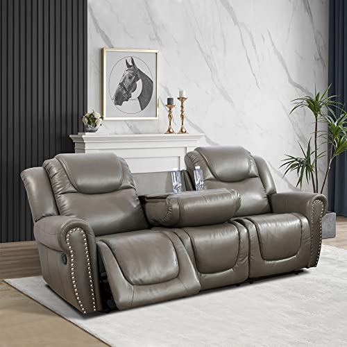 Leather Recliner Loveseat, Living Room Furniture, Manual Reclining Couch, 2-Seater Grey leather Sofa for Living Room/Apartment/Office