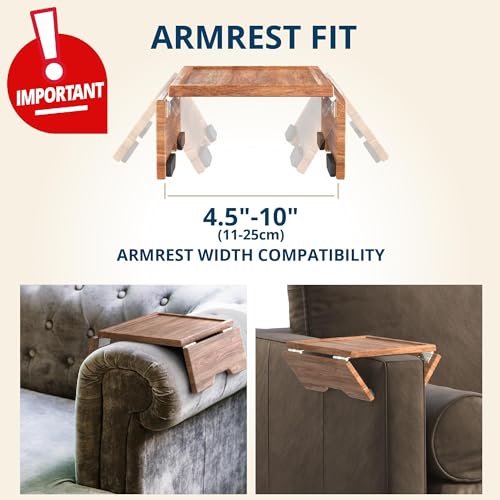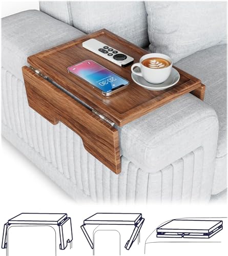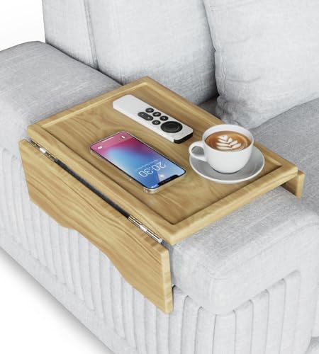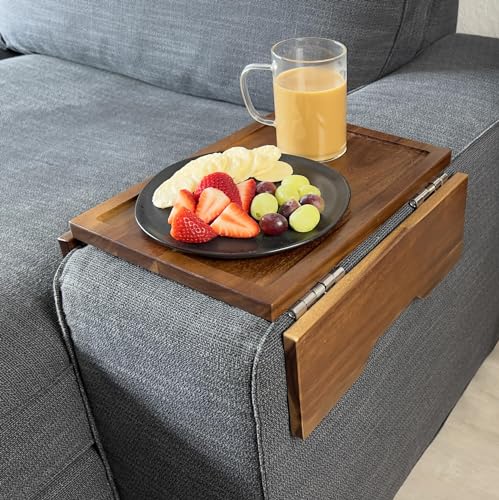 Sofa Armrest Tray – Acacia | Couch Arm Table - Clip-On Couch Desk Sofa Arm Tray