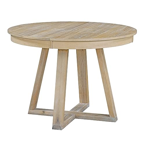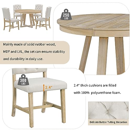 Merax, Natural 5-Piece Retro Functional Dining Set, Wood 16" W Leaf and 4 Upholstered, 58" Extendable Round Table+4 Chairs(Cross Shape)