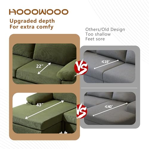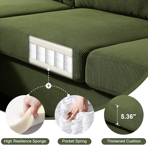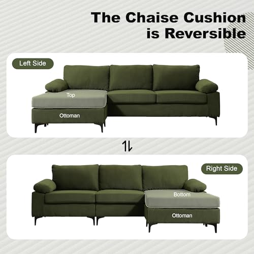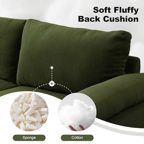 100" Corduroy Chaise Couch,L Shaped Sectional Sofa,Modern Comfy Deep Couchs for Apartment Office,Black(Right)