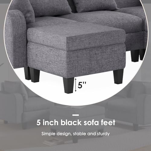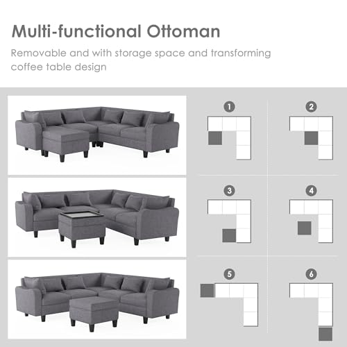 87" Modern Sectional Sofa L-Shaped Couch, 6 seat Upholstered Indoor Furniture with Convertible Ottomans for Living Room,Apartment,Beige