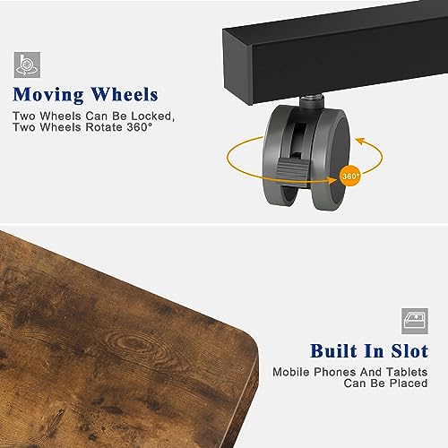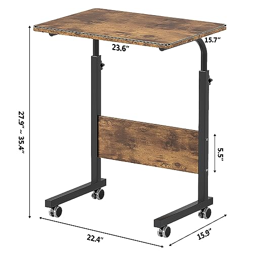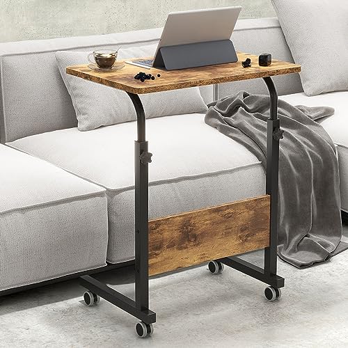 SogesGame Side Table, 23.6in Adjustable Laptop Stand Portable Cart Tray Bedside Computer Table, Sofa Side Bed Table with Wheels(White)