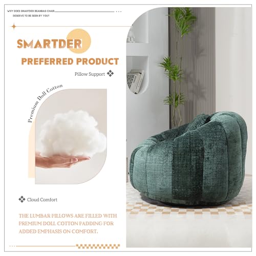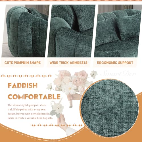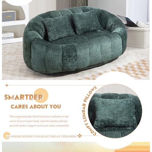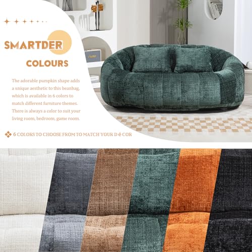 Giant Bean Bag Chair Couch with Foam Filler, Oversized Bean Bag Sofa for Adults,Teens, Comfy Floor Loveseat with 2 Pillows, Lazy Beanbag Lounger for Living Room, Game Room, Office, Chenille Emerald