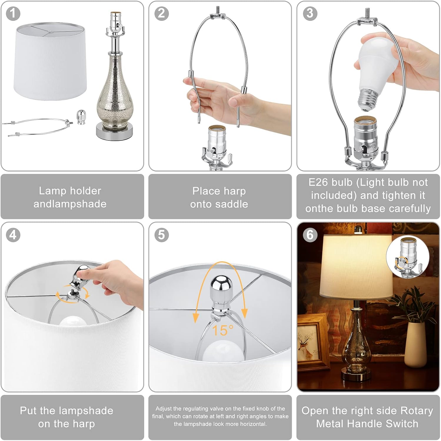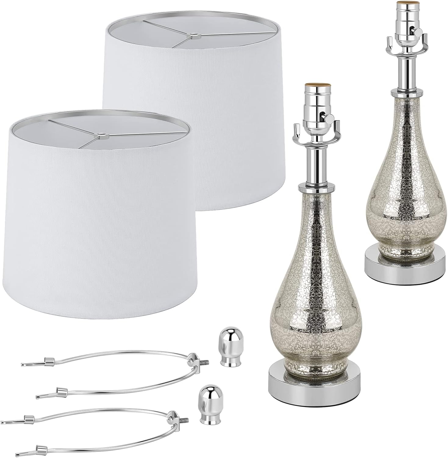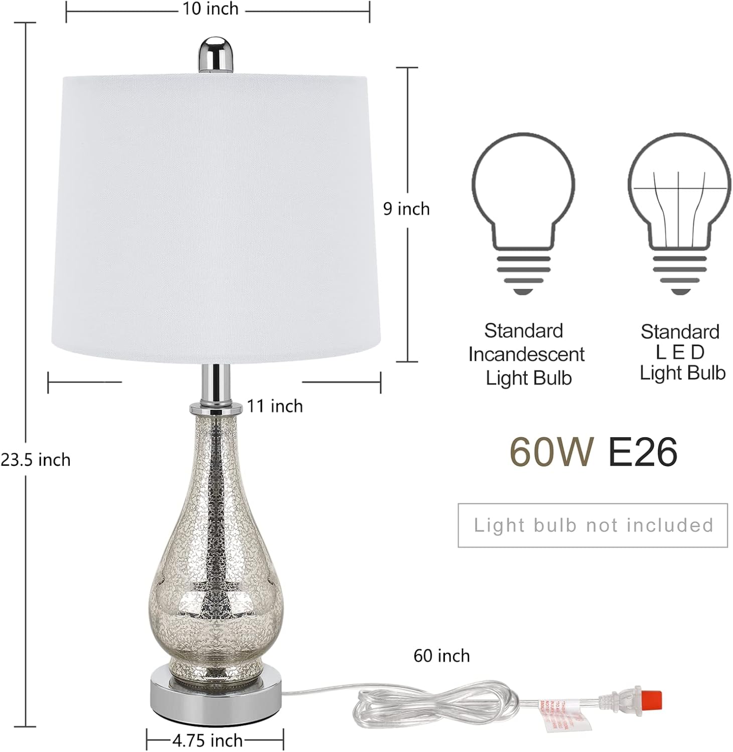 Glass Table Lamps Set of 2, Modern 23.5” High Silver Mercury Glass Bedside Lamps, for Bedroom Living Room Home Office Desk Nightstand Table Lamp
