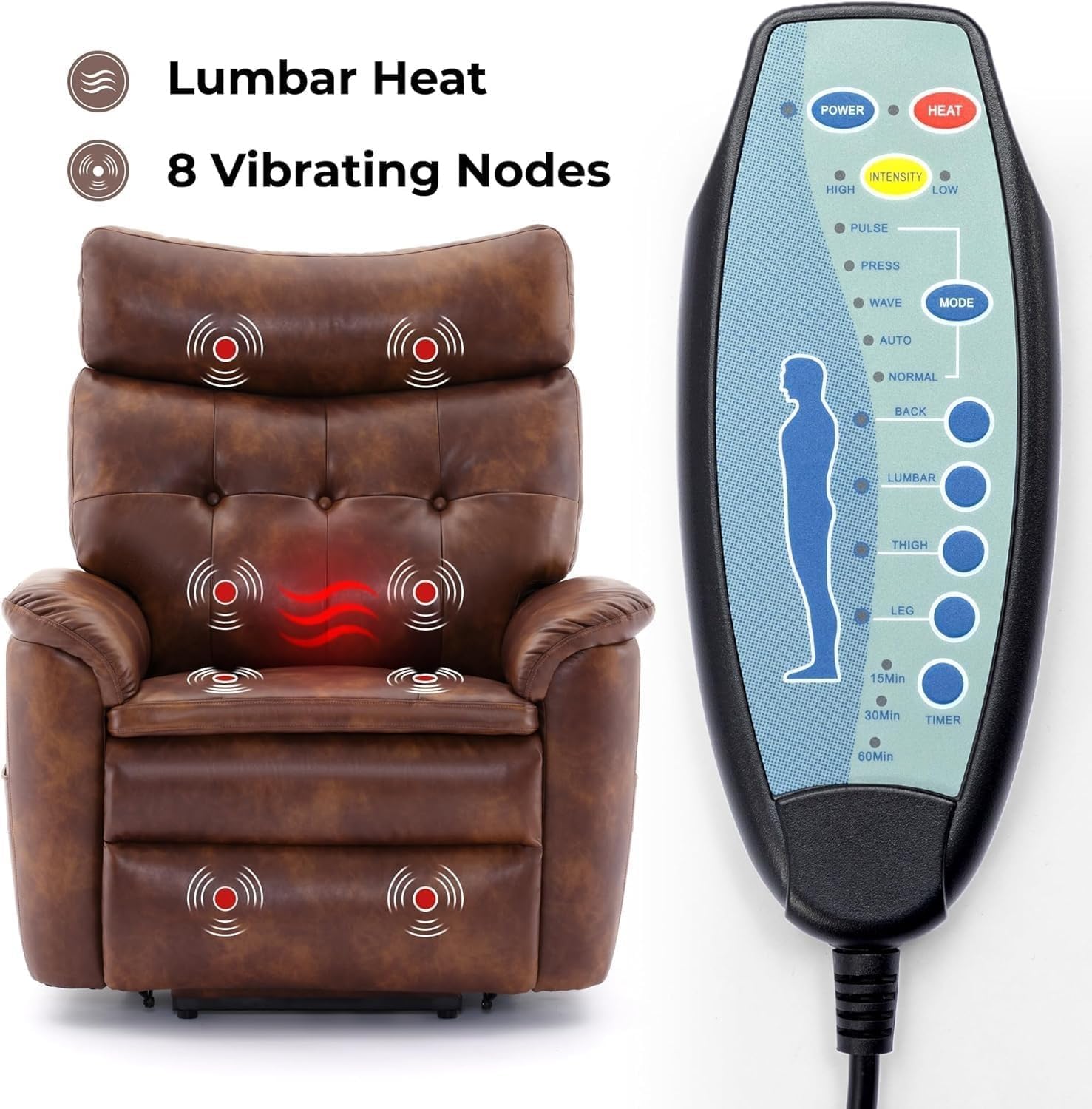 Recliner Chair, Electric Power Lift Recliner Chair for Elderly, Leather Reclining Sofa with Massage and Heat, Adjustable Recliner Couch for Living Room with USB Port