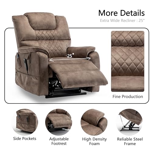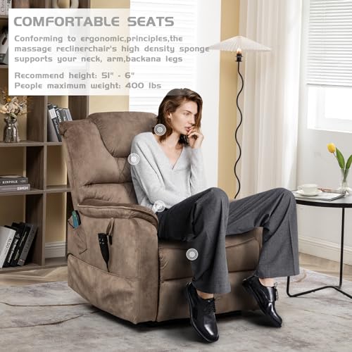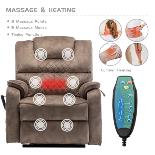 Oversized Power Lift Recliner Chair for Elderly with Massage Heat, Brown Velvet Electric Lay Flat Recliners with Cup Holders, Side Pockets, Infinite Position, Gift for Family