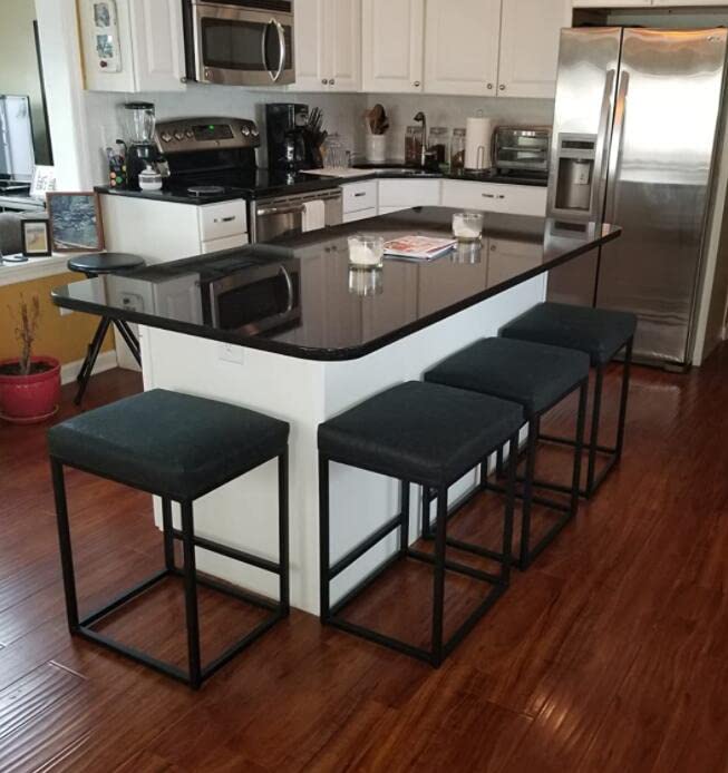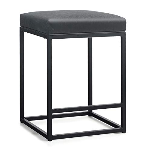 MAISON ARTS Black Counter Height 24" Bar Stools Set of 4 for Kitchen Counter Backless Modern Square Barstools Upholstered Faux Leather Stools Farmhouse Island Chairs, (24 Inch,Black)