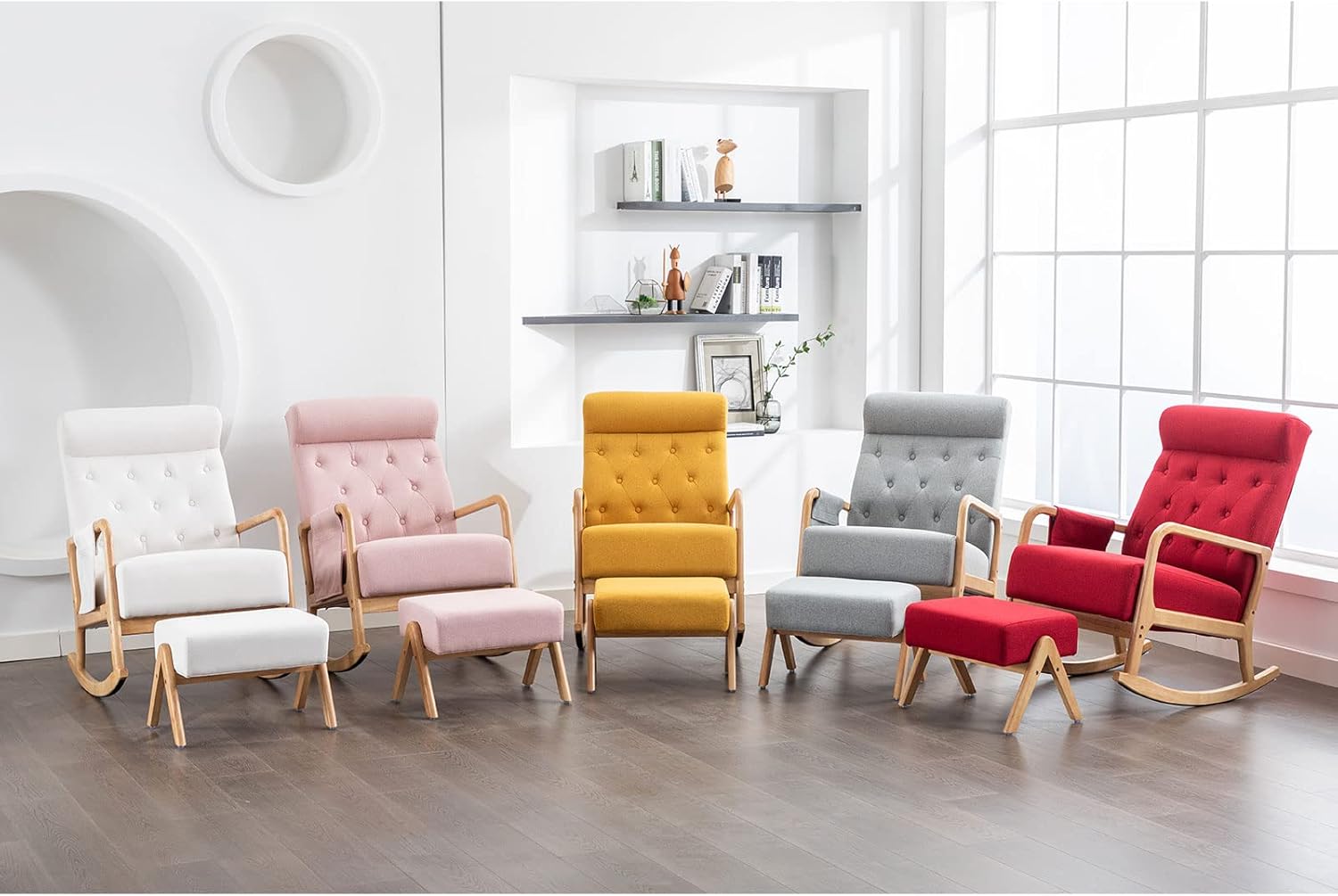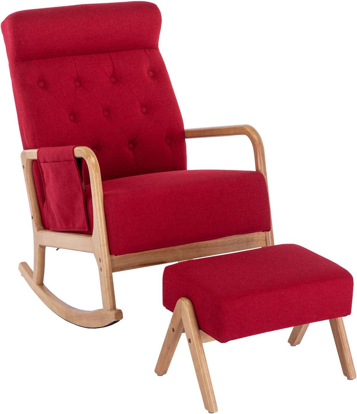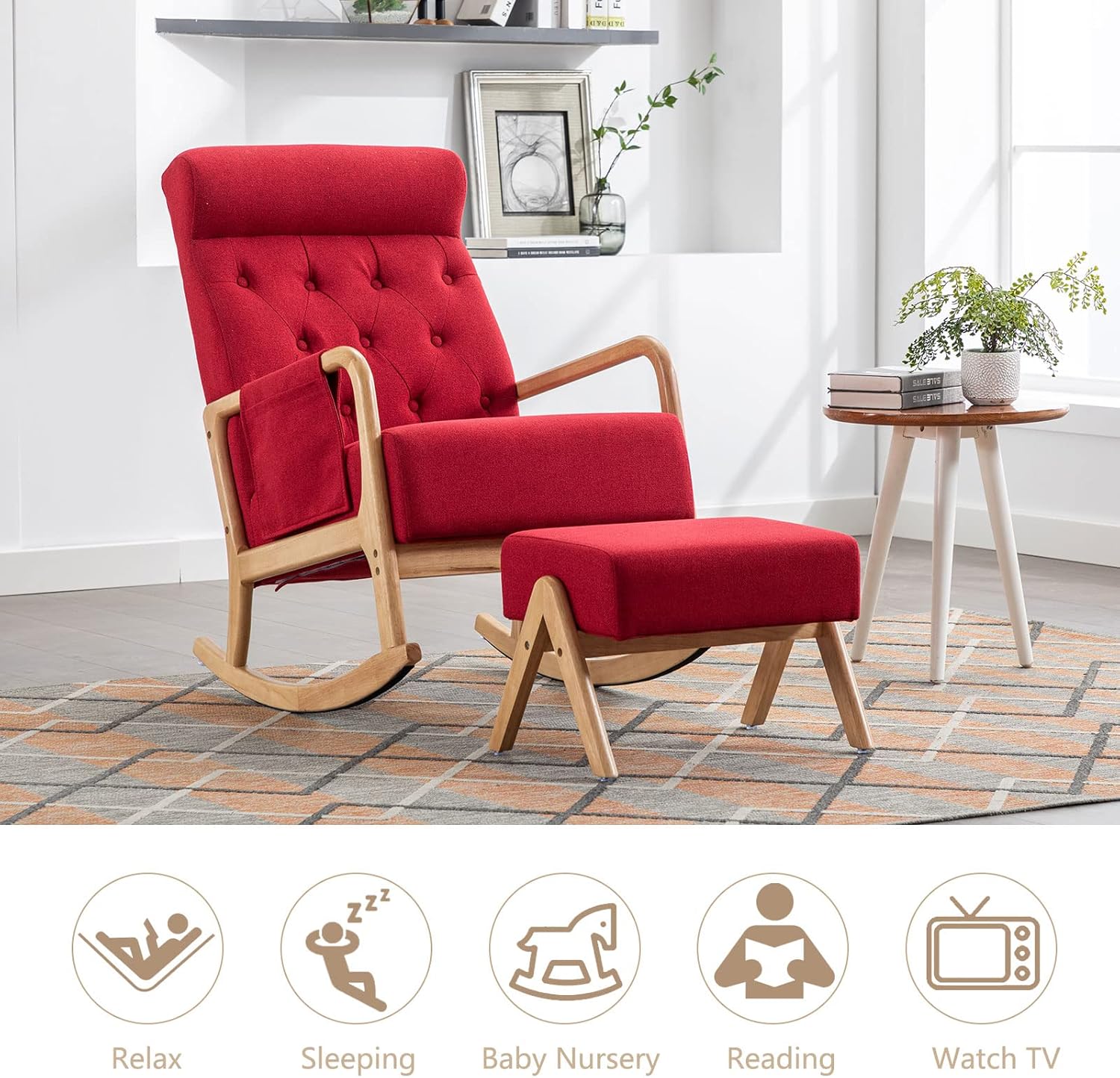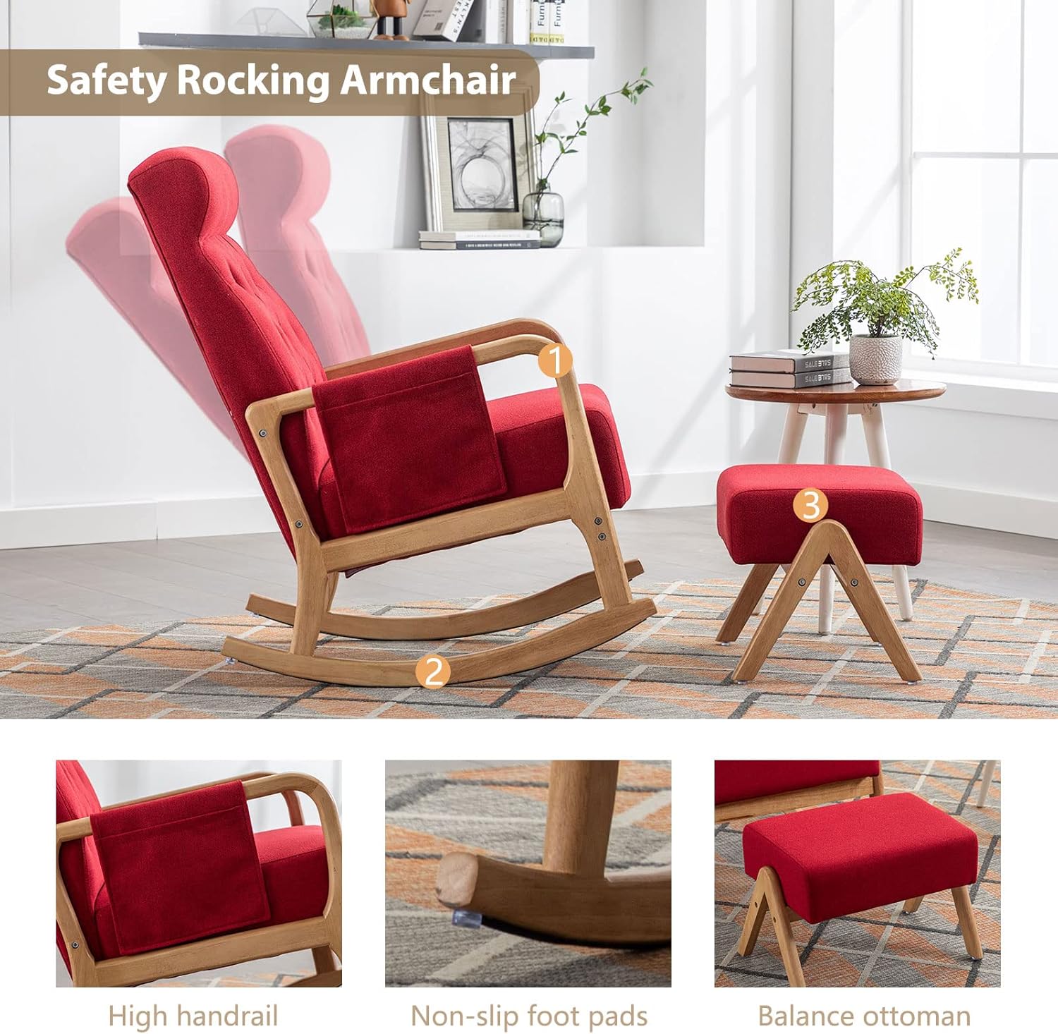 GNIXUU Glider Chair with Ottoman, Rocking Chair for Nursery, Upholstered Fabric Rocking Armchair Indoor with High Backrest for Living Room(Red)