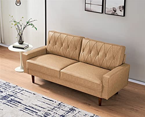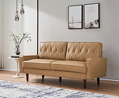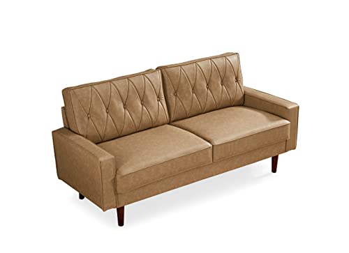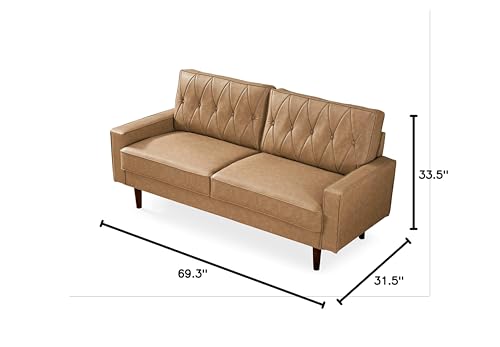 Modern Style Faux Leather Sofa with Elegant Round Tapered Legs and Button Tufted Backrest Perfect for Living Room, Bedroom or Home Office, 69.3’’ Wide, Brown