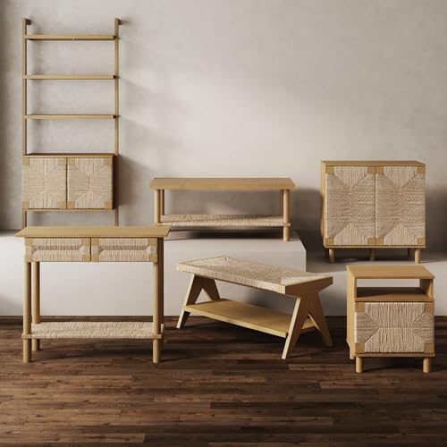 Nathan James Accent Storage Boho Modern Free Buffet Sideboard Cabinet for Hallway, Entryway, Dining Living Room, Set of 2 TV Stand, Beacon - Light Brown
