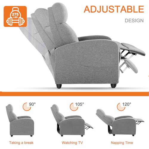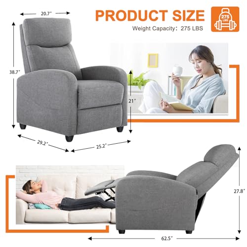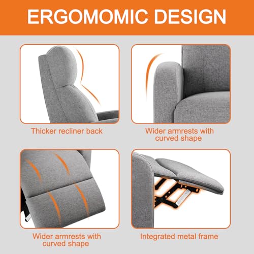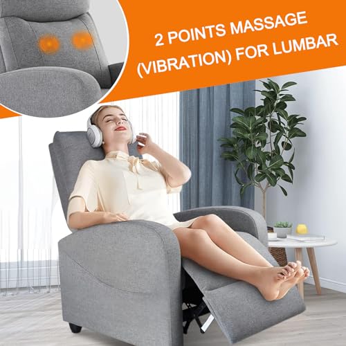 Recliner Chair for Living Room, Massage Fabric Small Recliner Home Theater Seating with Lumbar Support for Adults, Adjustable Modern Reclining Chair with Padded Seat Backrest, Black