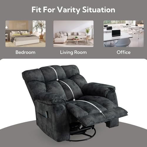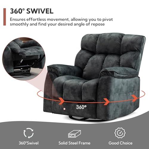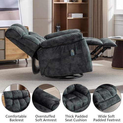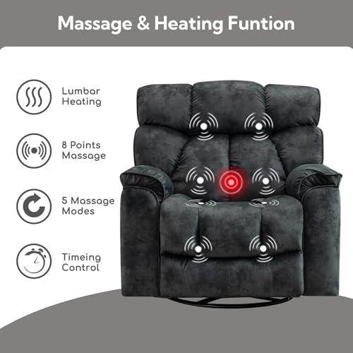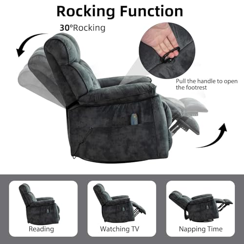 INMOZATA Swivel Rocker Recliner Chair with Heat and Massage Reclining Sofa Manual Lazy Boy Recliner Chair for Adults, Living Room Chair, Spot Velvet -Grey