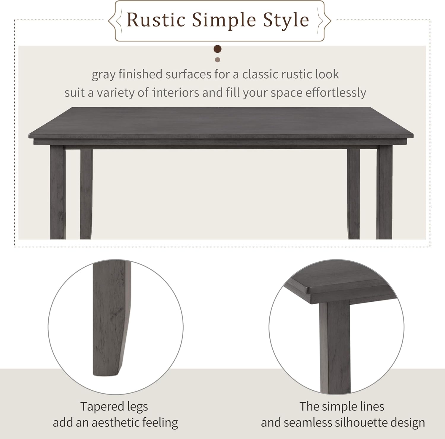 6 Piece Rustic Wood Table with 4 Upholstered Chairs and one 2-Person Bench Included, A Stable Frame and a Long lifespan, for Dining Room, Kitchen, Gray 15