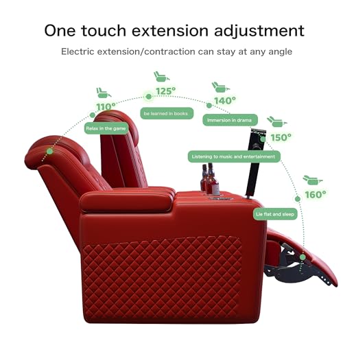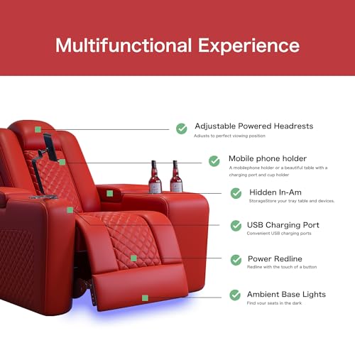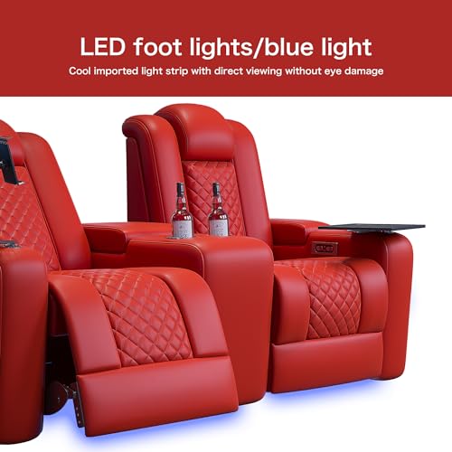 Home Theater Seating ,Home Theater Sofa, Premium Top Grain Italian Nappa 11000 Cow Leather, Power Reclining, Power Lumbar Support, Power Headrest (Orange, Row of 2)