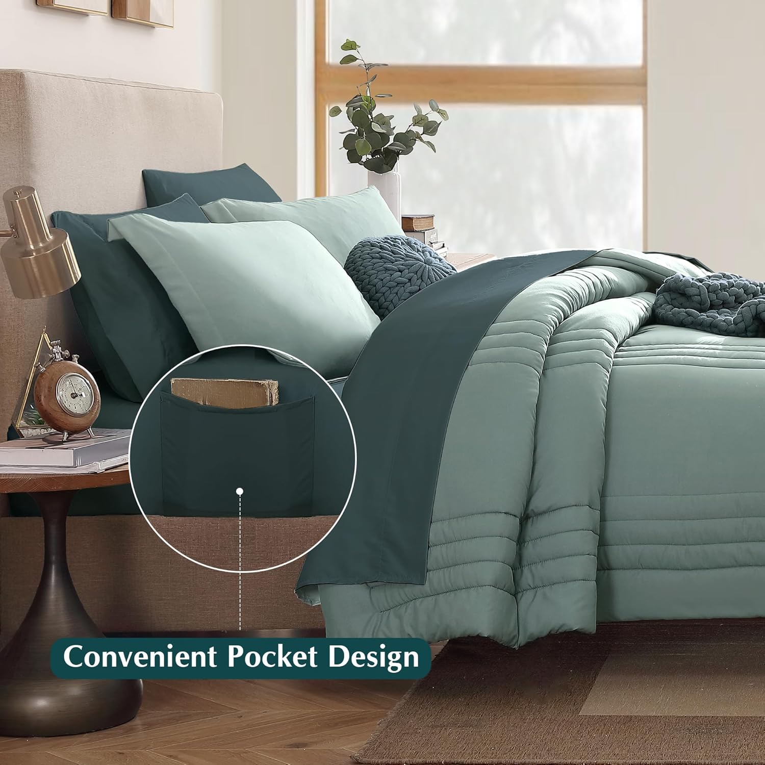 Monbix California King Comforter Set,California King Comforter, All Seasons Comforters,Quilting Design Bed in A Bag Cal King Comforter with Sheets(Sage Green, California King, 108 * 92)