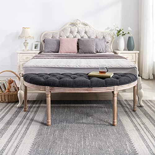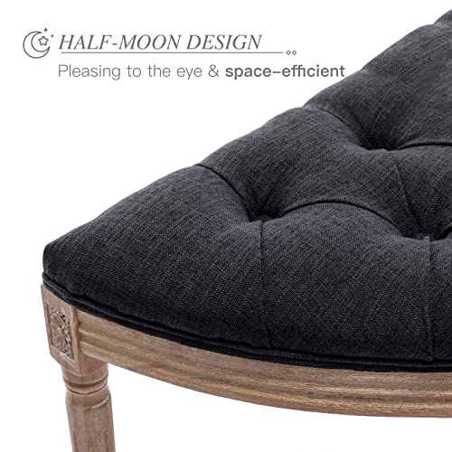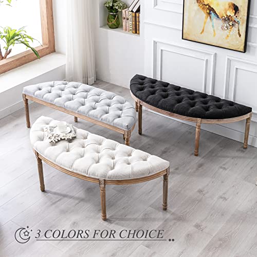 55" End of Bed Bench Vintage Half Moon Upholstered Fabric Semi-Circle Entryway Bench with Padded Seat & Rubberwood Legs, Tufted Dining Bench for Bedroom Living Room Hallway, Beige