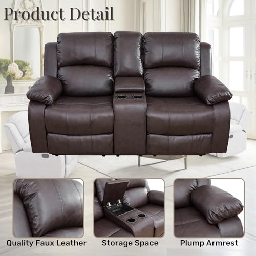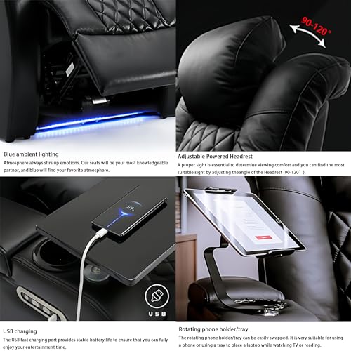 Large Seat, Tall Backrest, Wide Armrest,Recliner Chair for Living Room Home Theater Seating Lounge with Padded Seat Backrest,2-Seater Home Theater Recliner Sofa Black Faux Leather