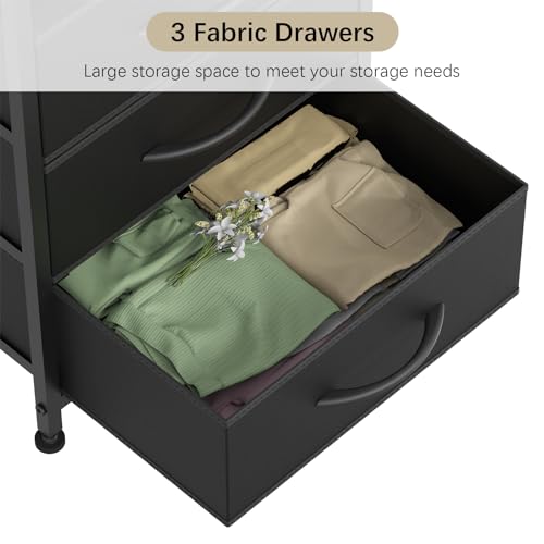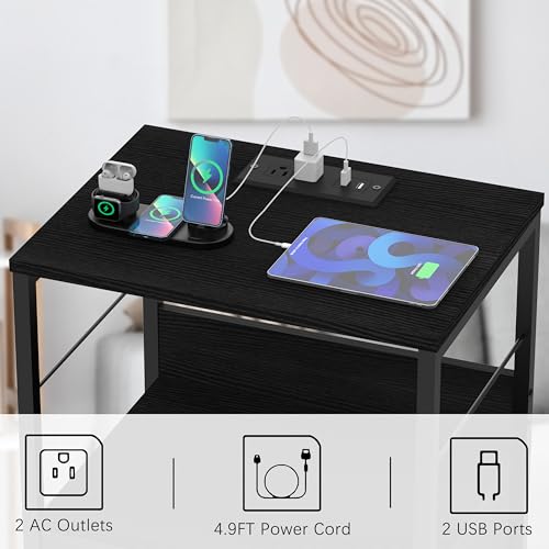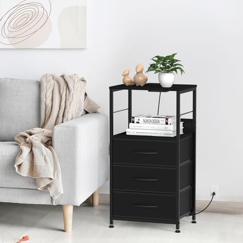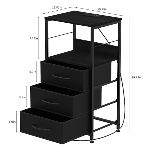 Tall Night Stand with Drawers, Black Nightstand with Charging Station End Table with USB Ports and Outlets Bedside Table with Fabric Drawers 5 Tier Side Table for Bedroom, Living Room, Office