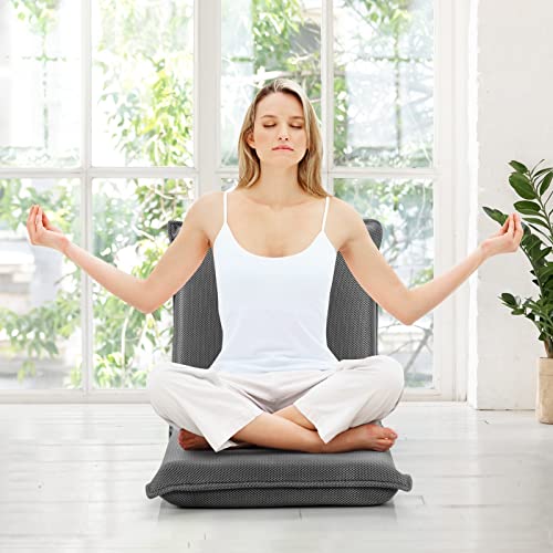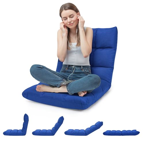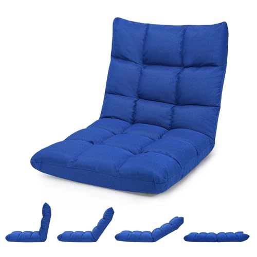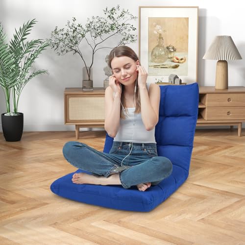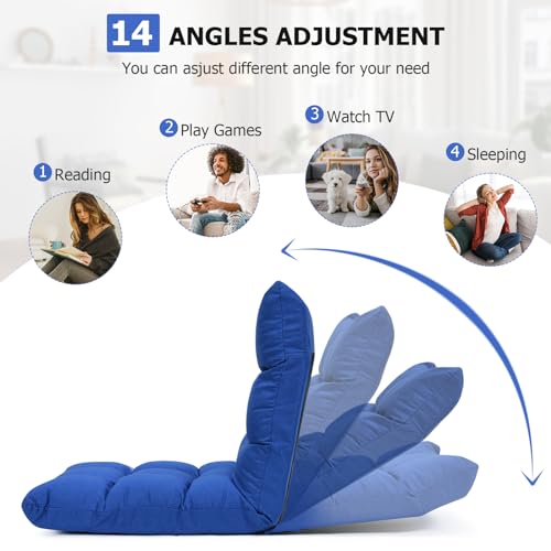 ERGOMASTER Floor Chair with Back Support,Adjustable Folding Floor Gaming Chair 14-Position Cushioned Lazy Sofa Chair for TV, Reading, Meditating Chair,Gaming Floor Chairs for Adults(Navy Blue)