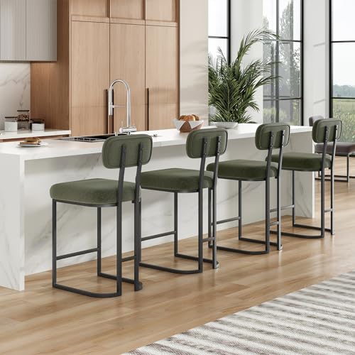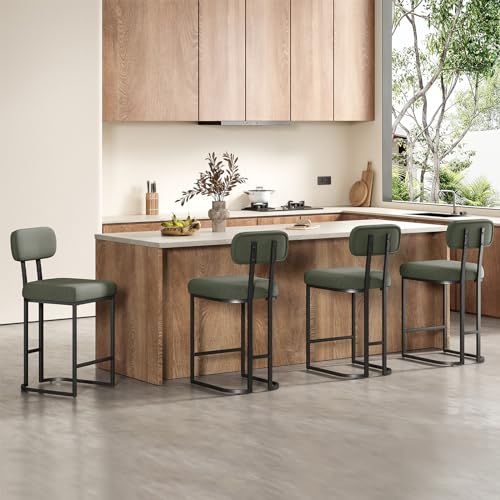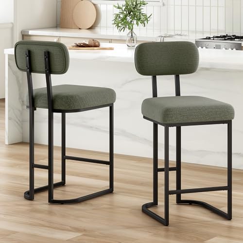 Farini Bar Stools Set of 2,Mid Century Modern Bar Chairs, Bar Height Stools with Back Support for Home Kitchen Island,White