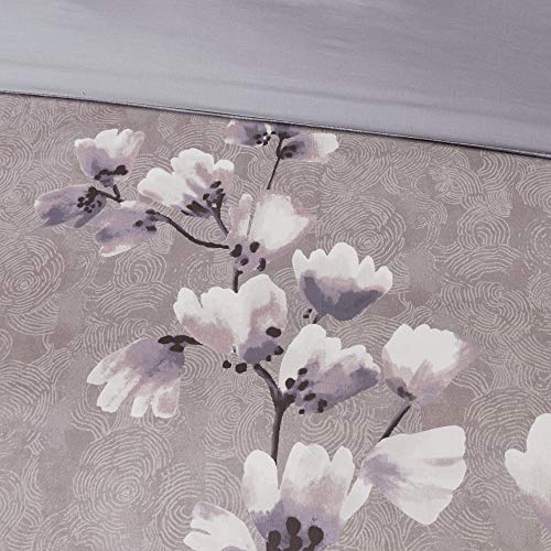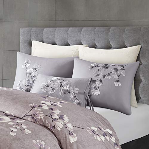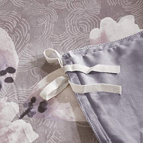 N Natori Sakura Duvet Cover Reversible Cherry-Blossom Cotton Printed Flower Floral Botanical Matching Embroidered Shams Soft Corner Ties All Season Bedding-Sets, King/Cal King(110"x96"), Lilac