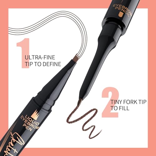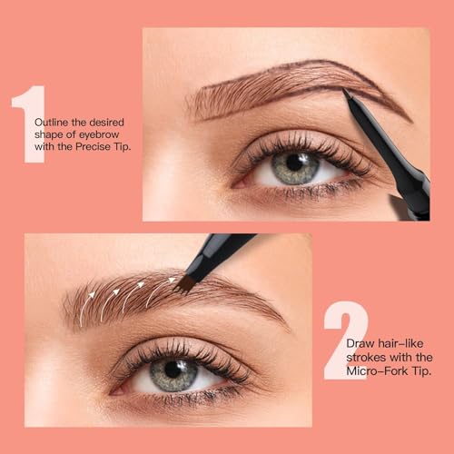 2 in 1 Eyebrow Microblading Pen, 2024 New Microblading Eyebrow Pen Tattoo Pencil 4 Fork Tip, Waterproof Magic Microblading Eyebrow Pencil for Natural Makeup Last All Day (Light Brown)