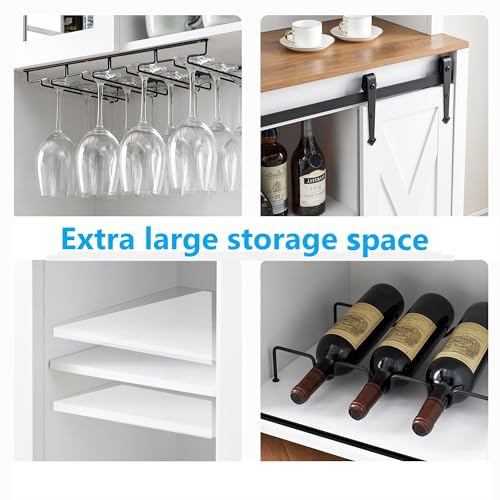 Farmhouse Bar Cabinet with Sliding Barn Door 69" Rustic Liquor Cabinet with Wine and Glasses Rack Wine Cabinet with Storage Hutch Cabinet Sideboard Cupboard for Kitchen Rustic Brown