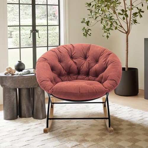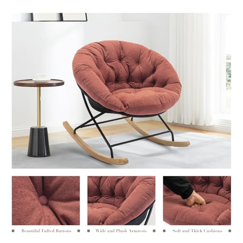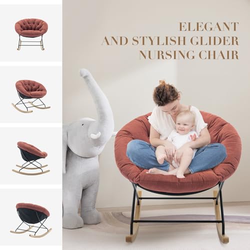 COLAMY Rocking Chair Nursery, Upholstered Glider Rocker Accent Chair Saucer Armchair with Comfy Cushions, Wood Base and Metal Legs for Living Room, Bedroom, Office, Cream