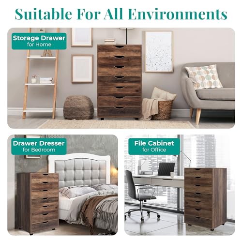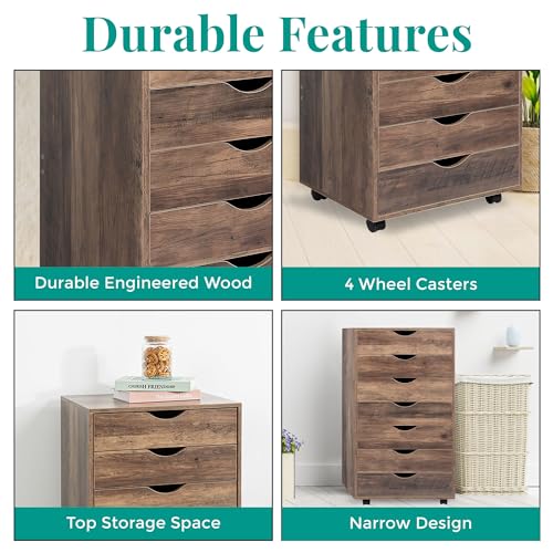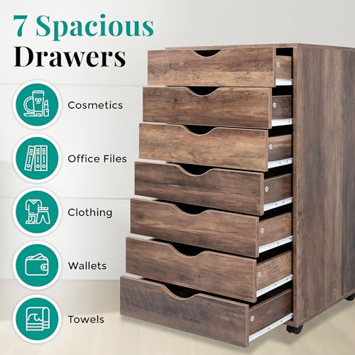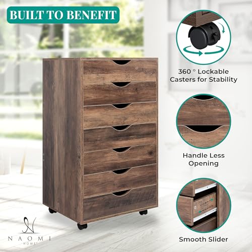 Naomi Home Debbie 7-Drawer Office Storage File Cabinet on Wheels, Mobile Under Desk Filing Drawer Unit, Craft Storage Organization for Home, Office Black