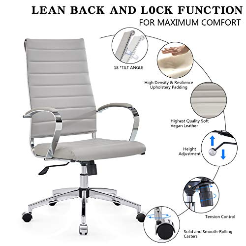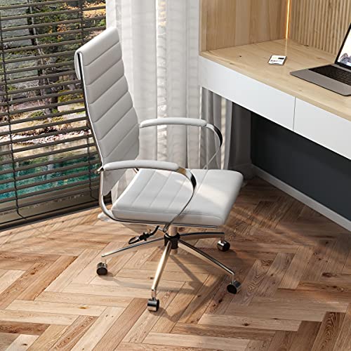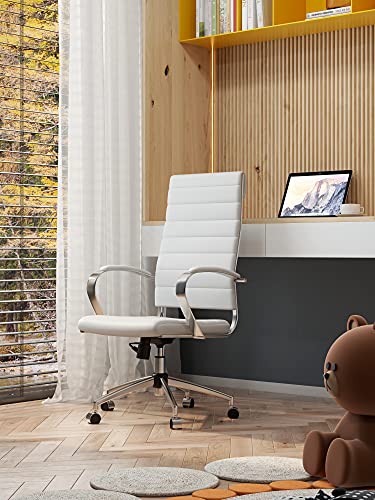lux Modern Gold Office Desk Chairs Modern Office Desk Chair with Wheels and arms Ergo Chairs high Back Chair Computer Leather Modern Chair Leather Office Executive Chair (GD-White)