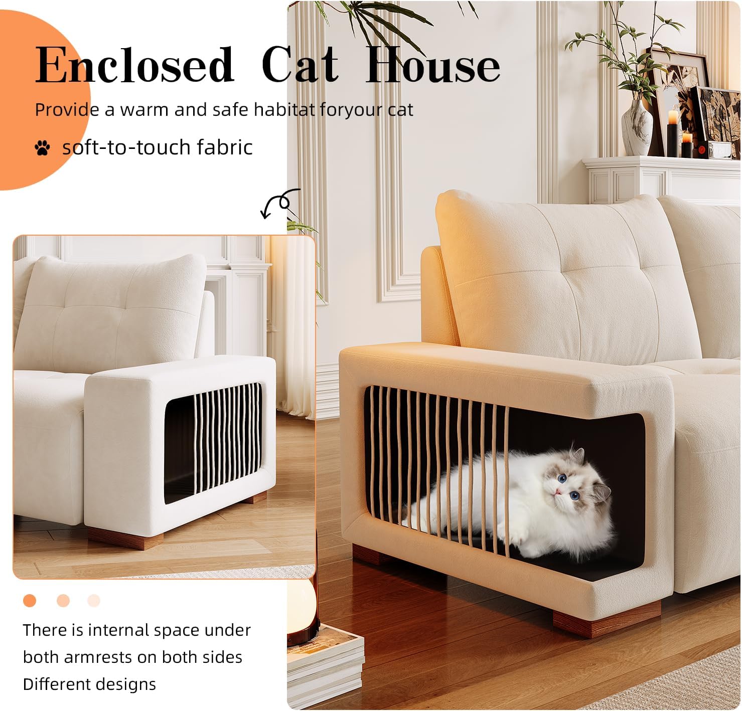 3 Seater Couch for Living Room, 89" Modern Sofa for Small Space,Comfy Couches with Wide Armrest,Cat's nest Sofa, pet Sofa,Cloud Couch with Waterproof and cat Scratch Resistant Fabric,Beige