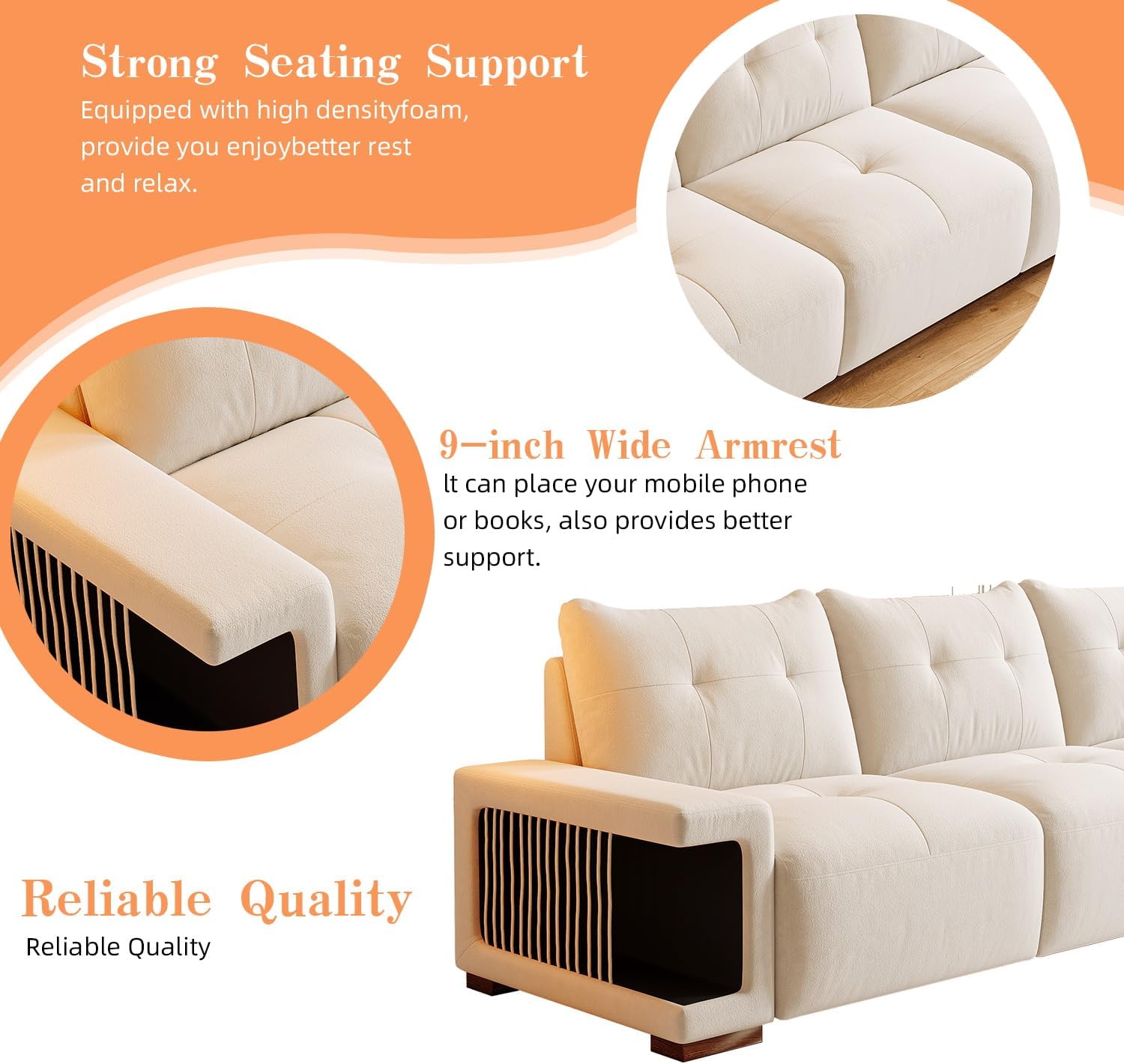 89.76" Modern Sofas Couches with Deep Seats for Living Room/Oversized Loveseat Sofa Couch/Boucle Sofas Couches for Living Room Apartment Office Cream