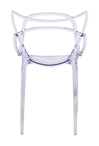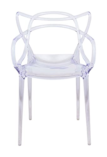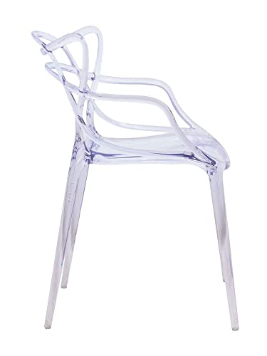 LeisureMod Twain Mid Century Modern Plastic Accent Dining Armchair with Elegant Wire Design, Stackable Plastic Chair for Indoor/Outdoor Use (Transparent Blue)