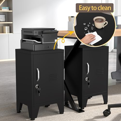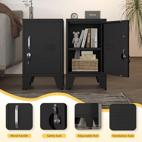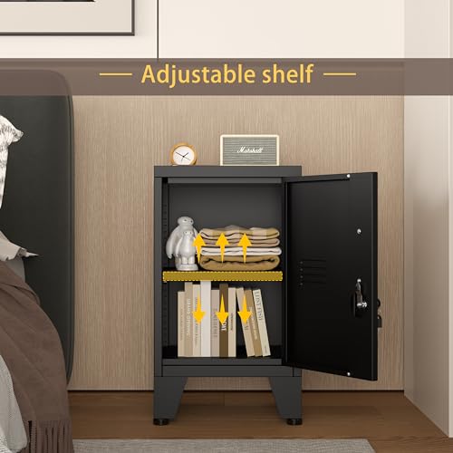 Blue Metal Nightstand, Under Desk Cabinet with Adjustable Shelf, Storage Cabinet with Lock can be Used as Side Table, Stackable Small Storage Cabinet for Bedroom, Living Room, Office and Gym