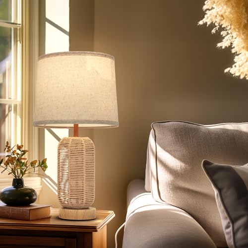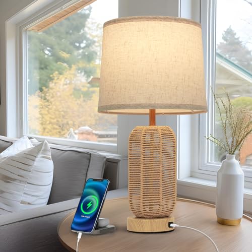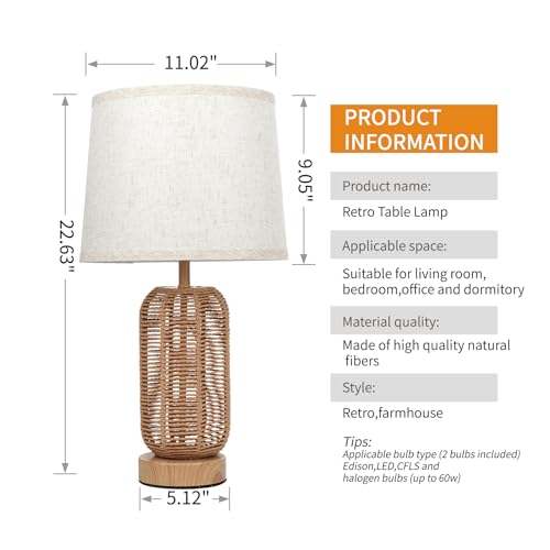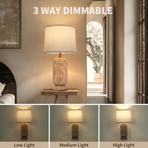FRIDEKO HOME Touch Bedroom Lamps Set of 2 - Boho 23-Inch Nightstand Lamps with USB C+A Ports 3-Way Linen Lampshade Table Lamp for Bedroom Living Room Office(LED Bulbs Included)
