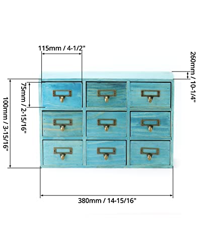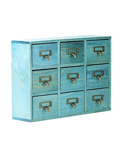 QWORK Desk Drawer Organizer, Wooden Vintage Apothecary Cabinet with 9 Drawers, Home Office & Tea & Dresser Bedroom Organization and Storage, Traditional Apothecary Cabinet, Blue