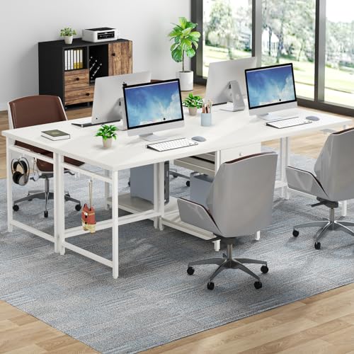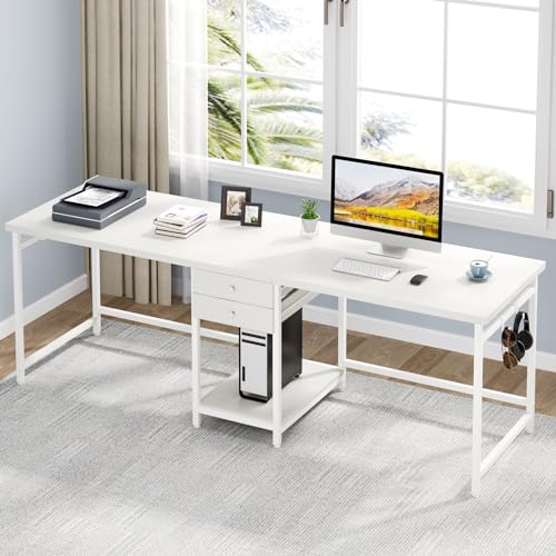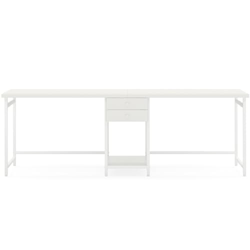 Tribesigns 78.74’’ Two Person Desk with 2 Drawers, Long Double Computer Desk Gaming Table with Shelves, Industrial Study Writing Table Workstation for Home Office, White