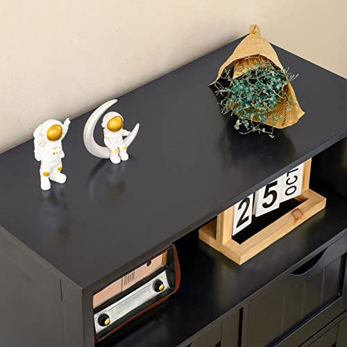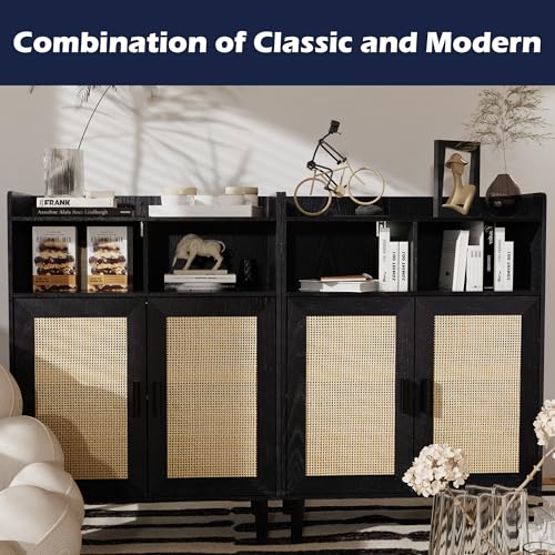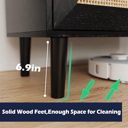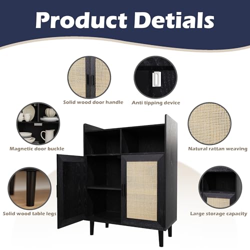 Ratten Buffet Cabinet with Storage,Mobile Bathroom Storage Cabinet with Wheels, Accent Sideboard Cabinet with Drawer for Hallway, Entryway, Living Room,Black
